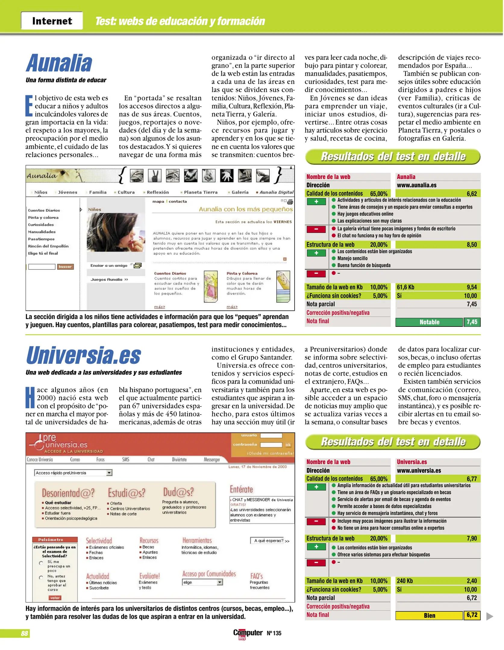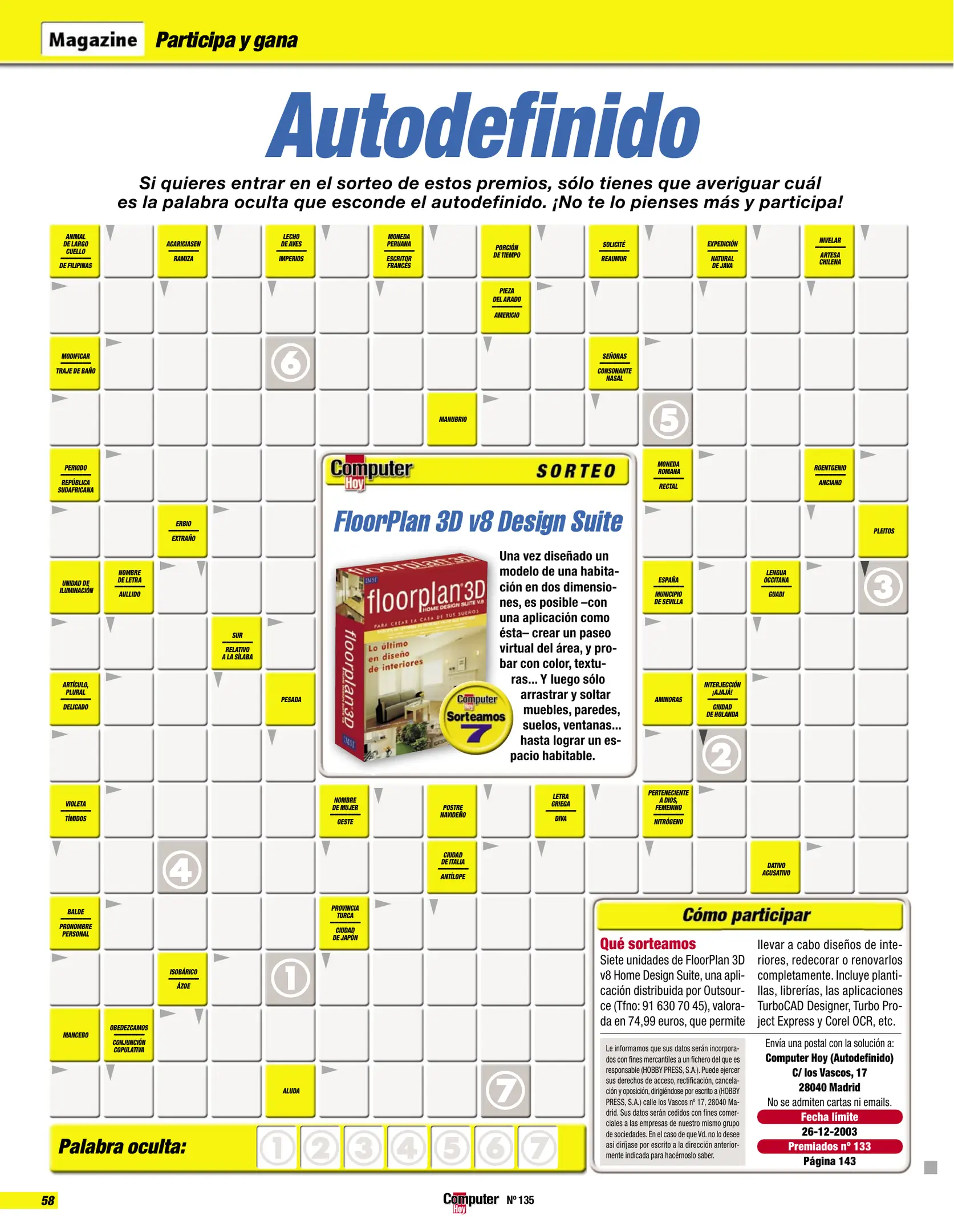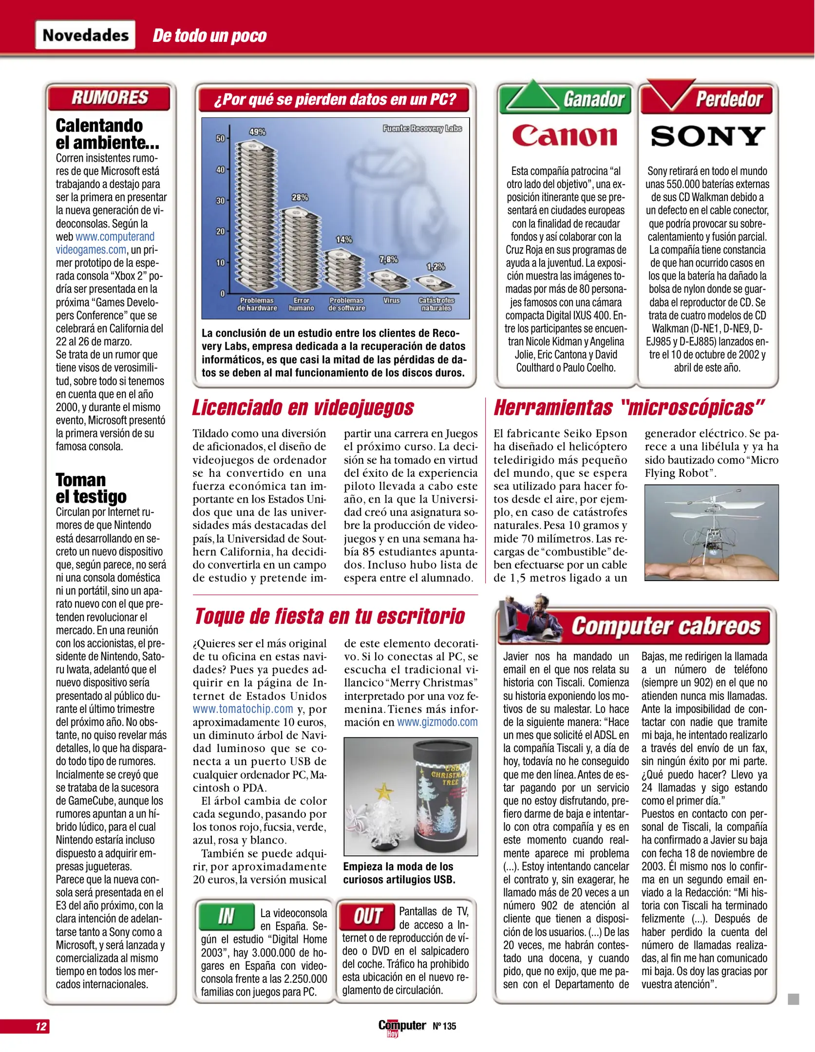 Computer Hoy - Número 135 [[lang_hl=es,Español]Diciembre de 2003[/lang_hl] [lang_hl=en,English]December of 2003[/lang_hl]]
