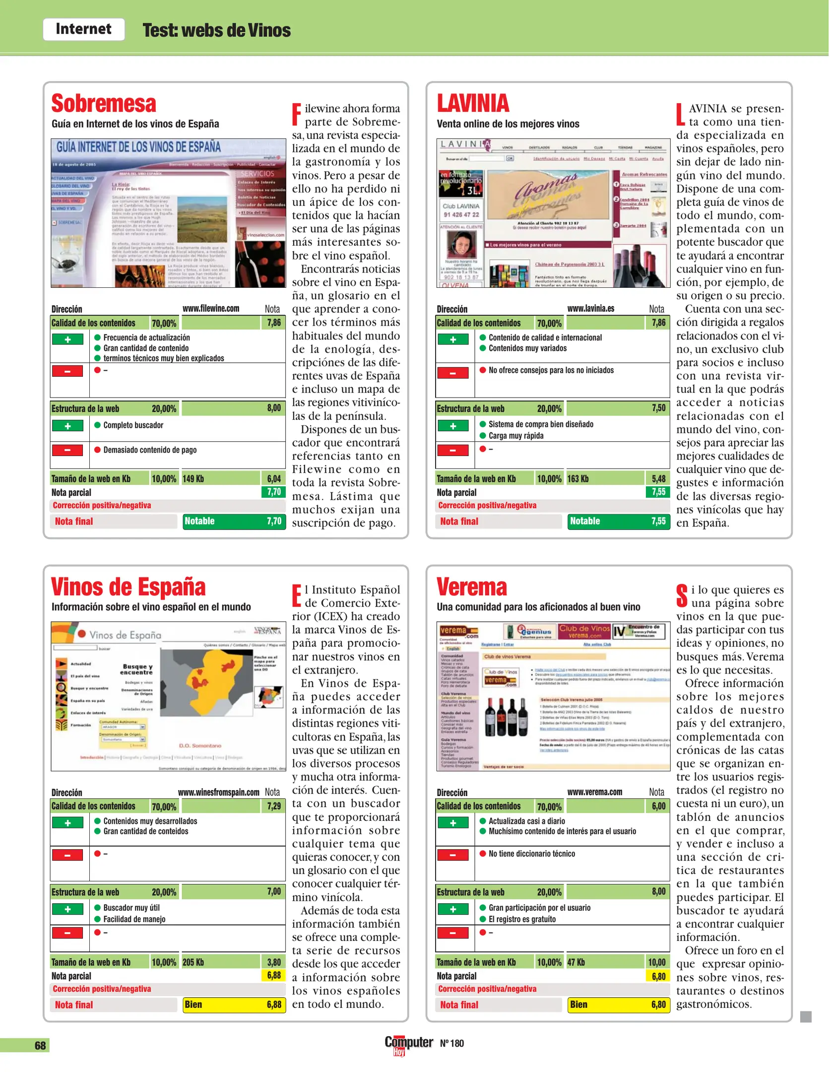 Computer Hoy - Número 180 [[lang_hl=es,Español]Agosto de 2005[/lang_hl] [lang_hl=en,English]August of 2005[/lang_hl]]