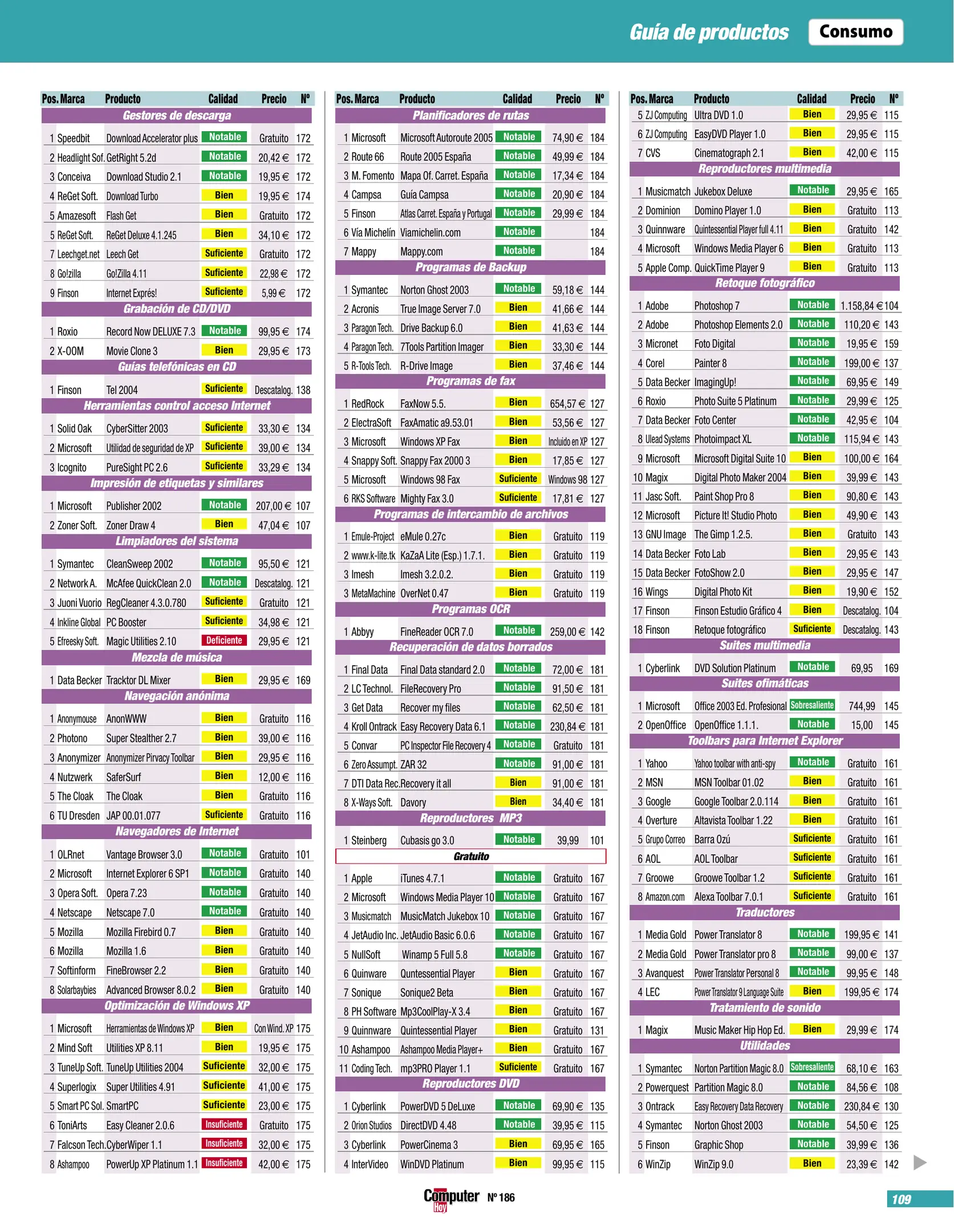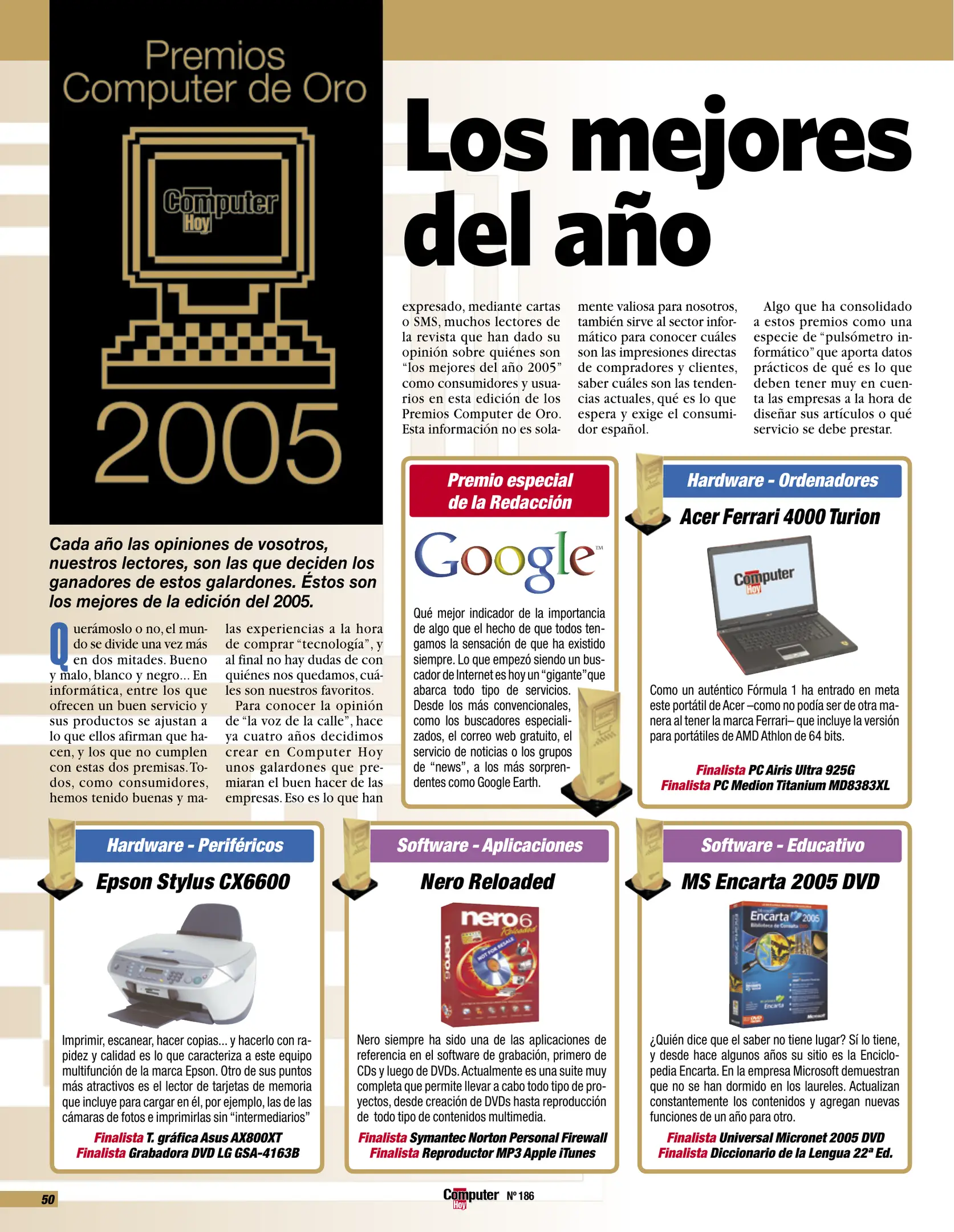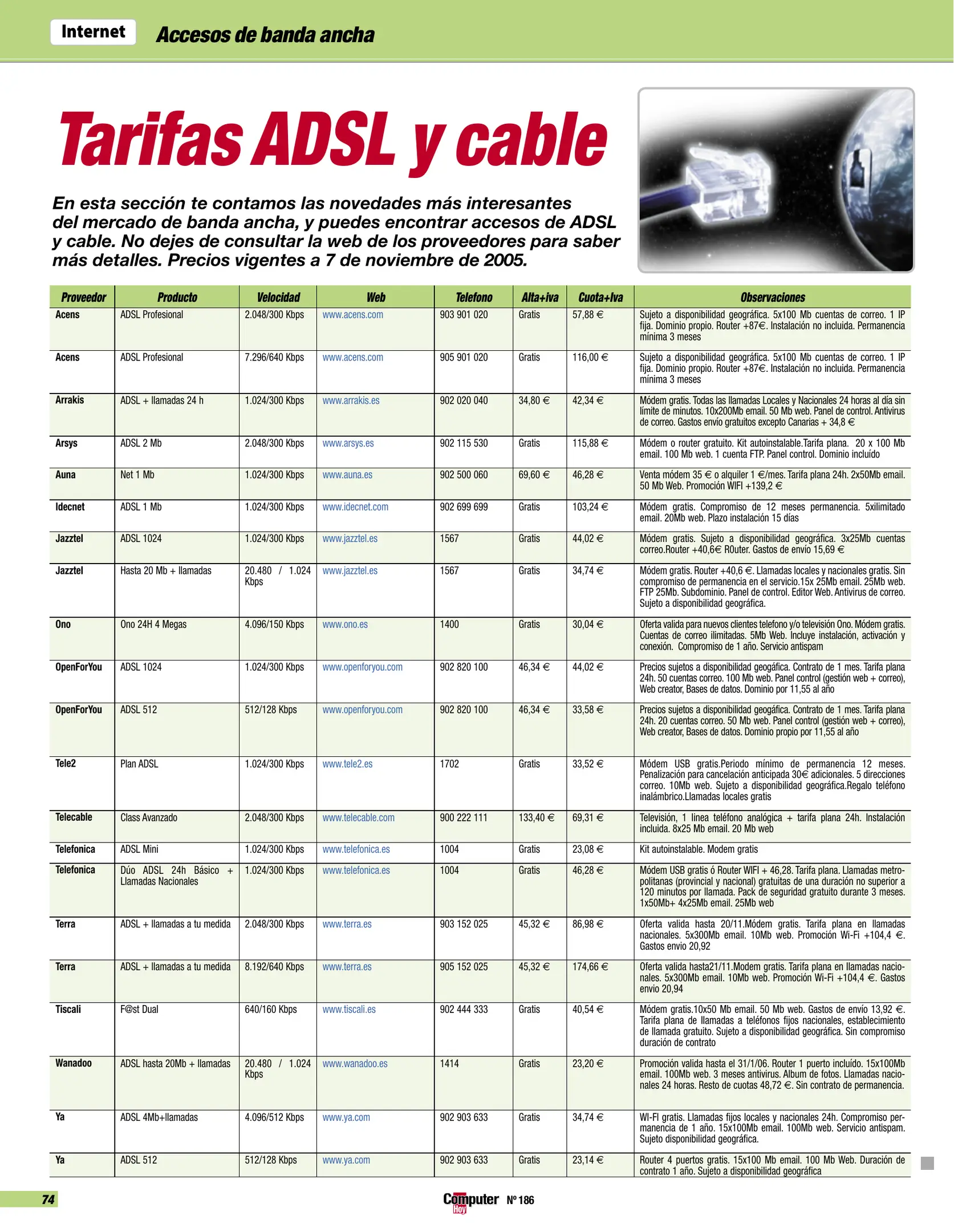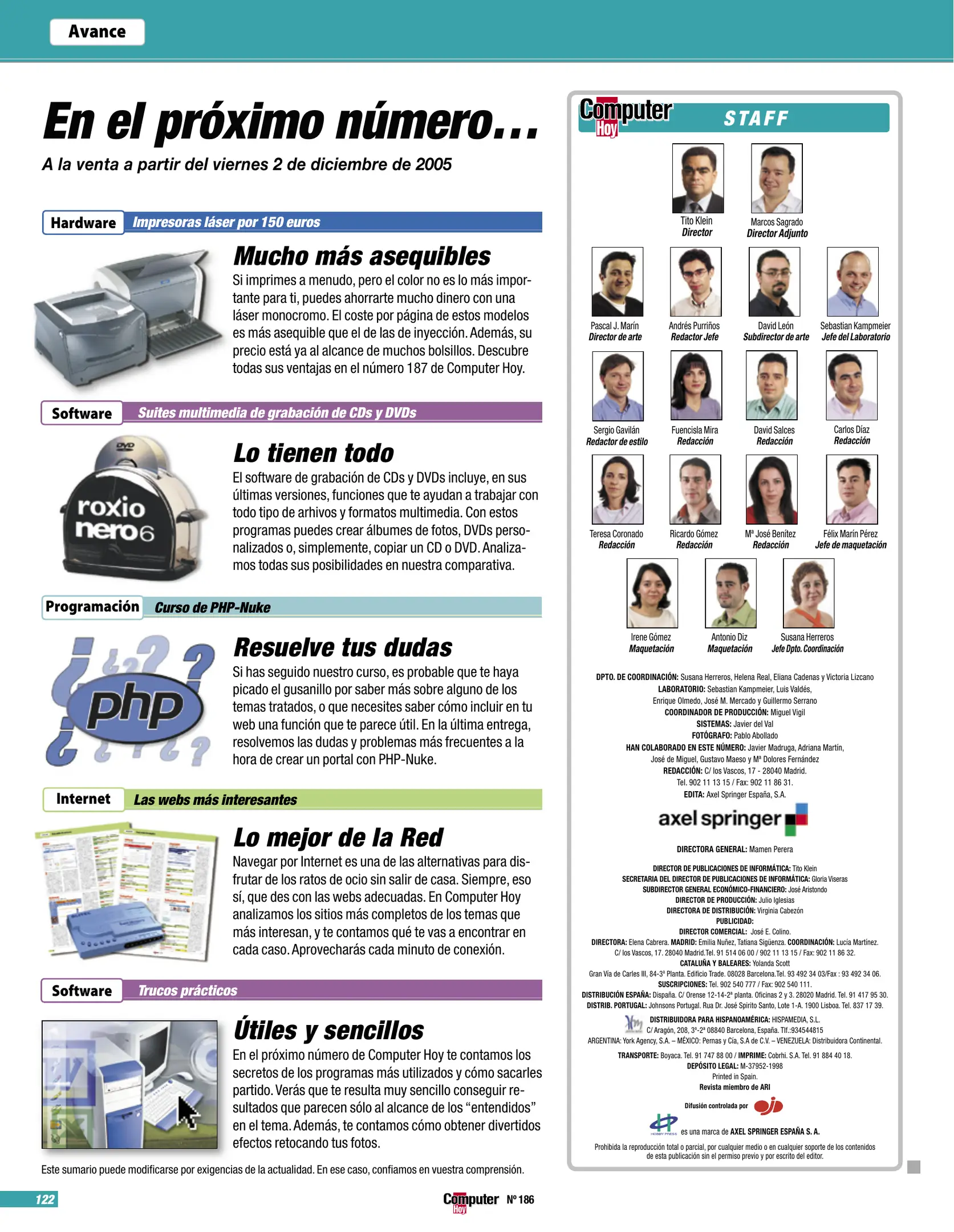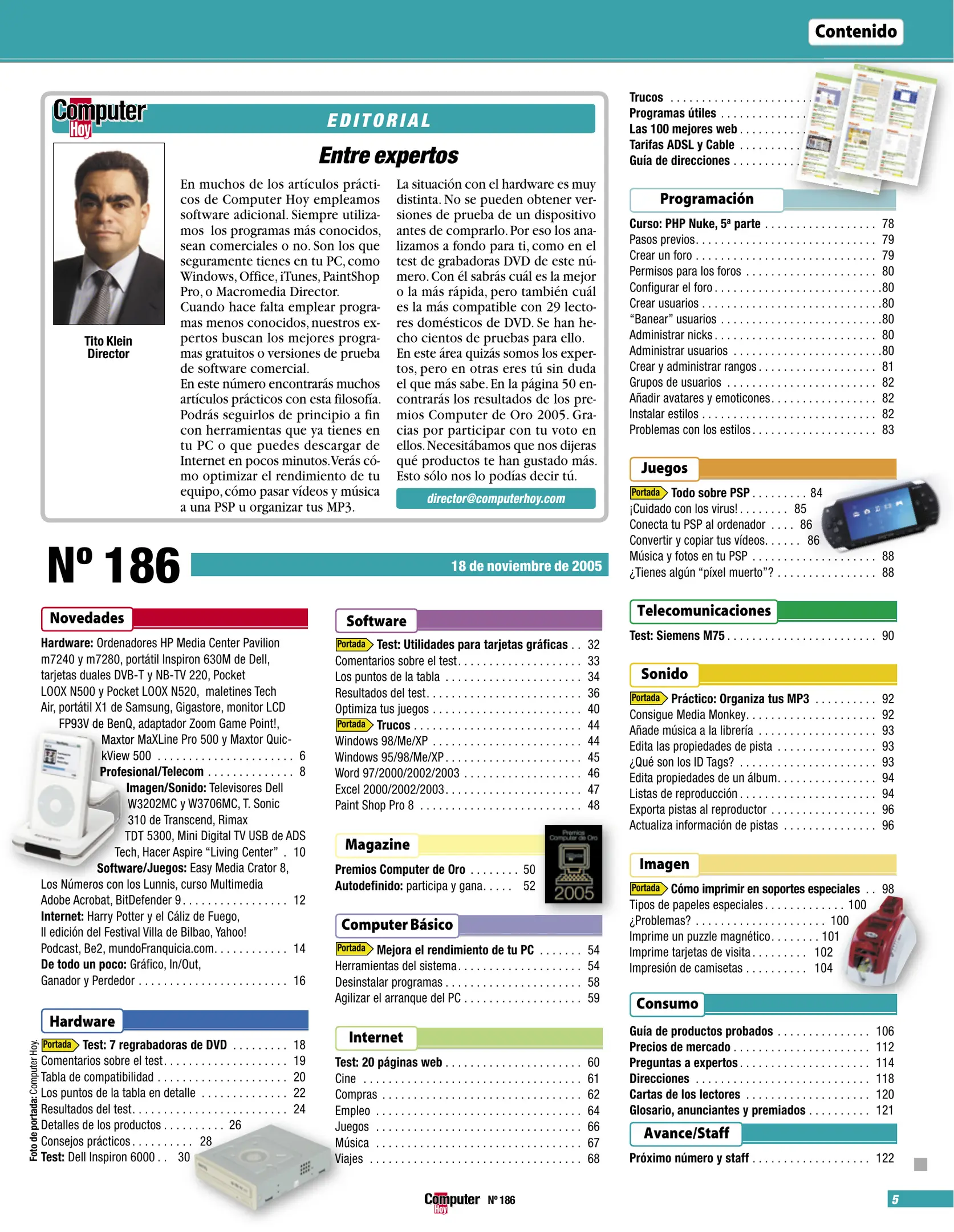 Computer Hoy - Número 186 [[lang_hl=es,Español]Noviembre de 2005[/lang_hl] [lang_hl=en,English]November of 2005[/lang_hl]]