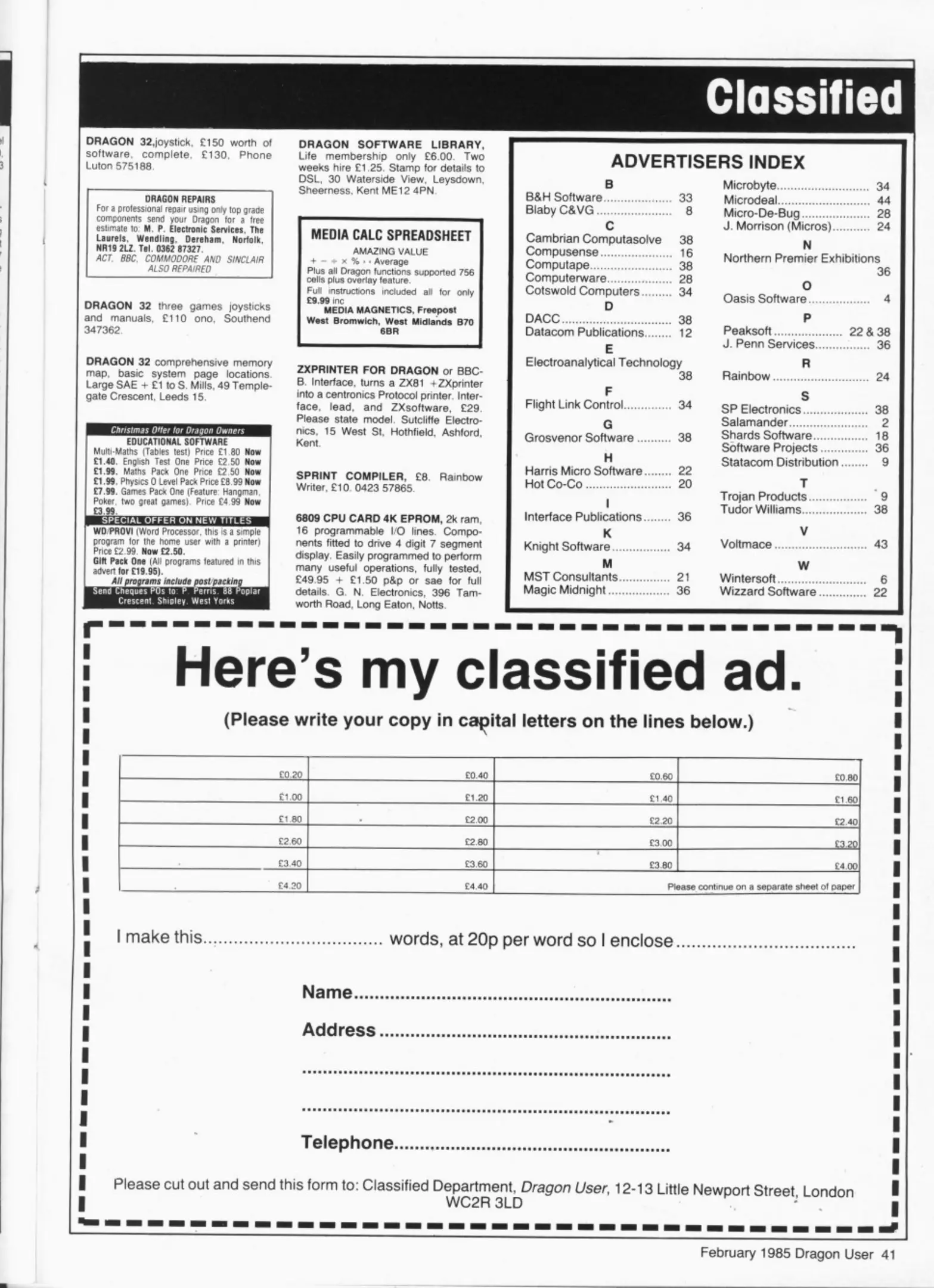 Dragon User - Number 22 [[lang_hl=es,Español]Febrero de 1985[/lang_hl] [lang_hl=en,English]February of 1985[/lang_hl]]