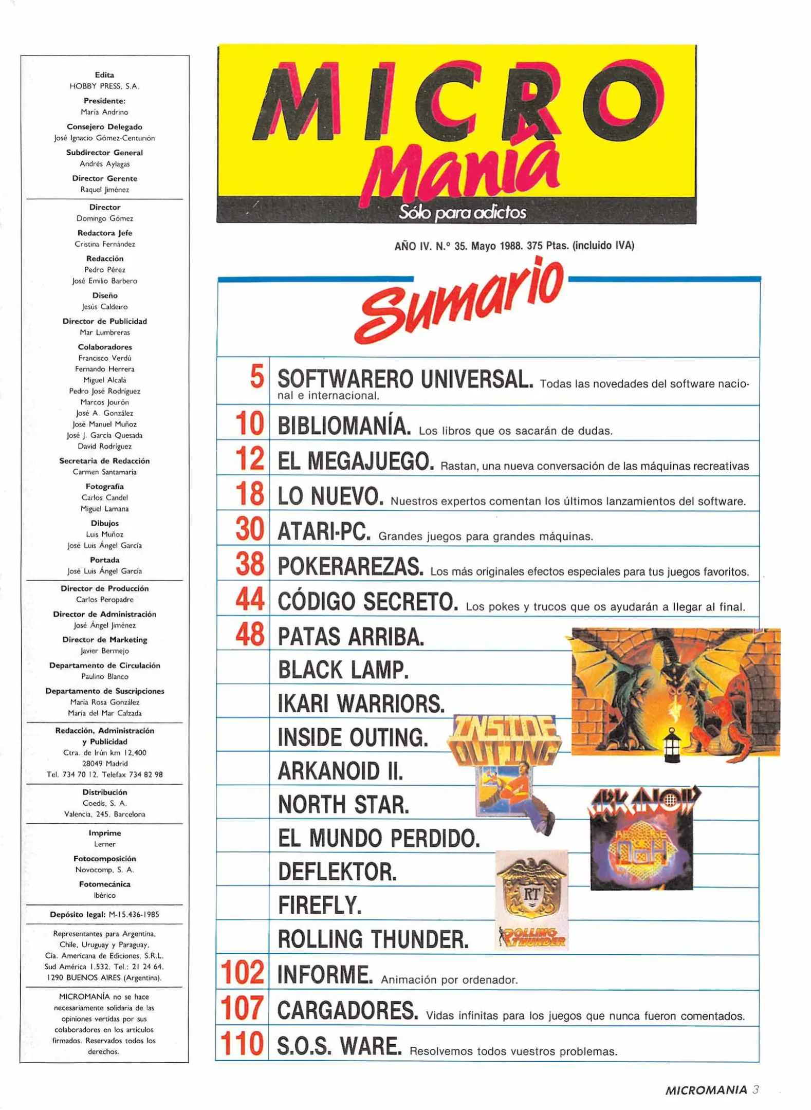 Micromanía (1ª ép.) - Año IV · Nº 35 [[lang_hl=es,Español]Mayo de 1988[/lang_hl] [lang_hl=en,English]May of 1988[/lang_hl]]
