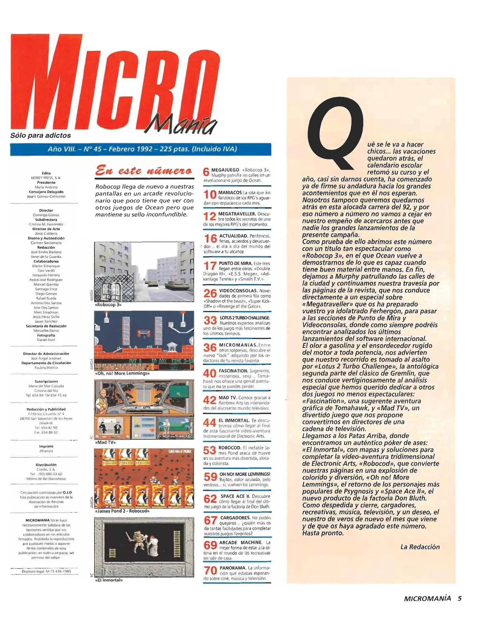 Micromanía (2ª ép.) - Número 45 [[lang_hl=es,Español]Febrero de 1992[/lang_hl] [lang_hl=en,English]February of 1992[/lang_hl]]