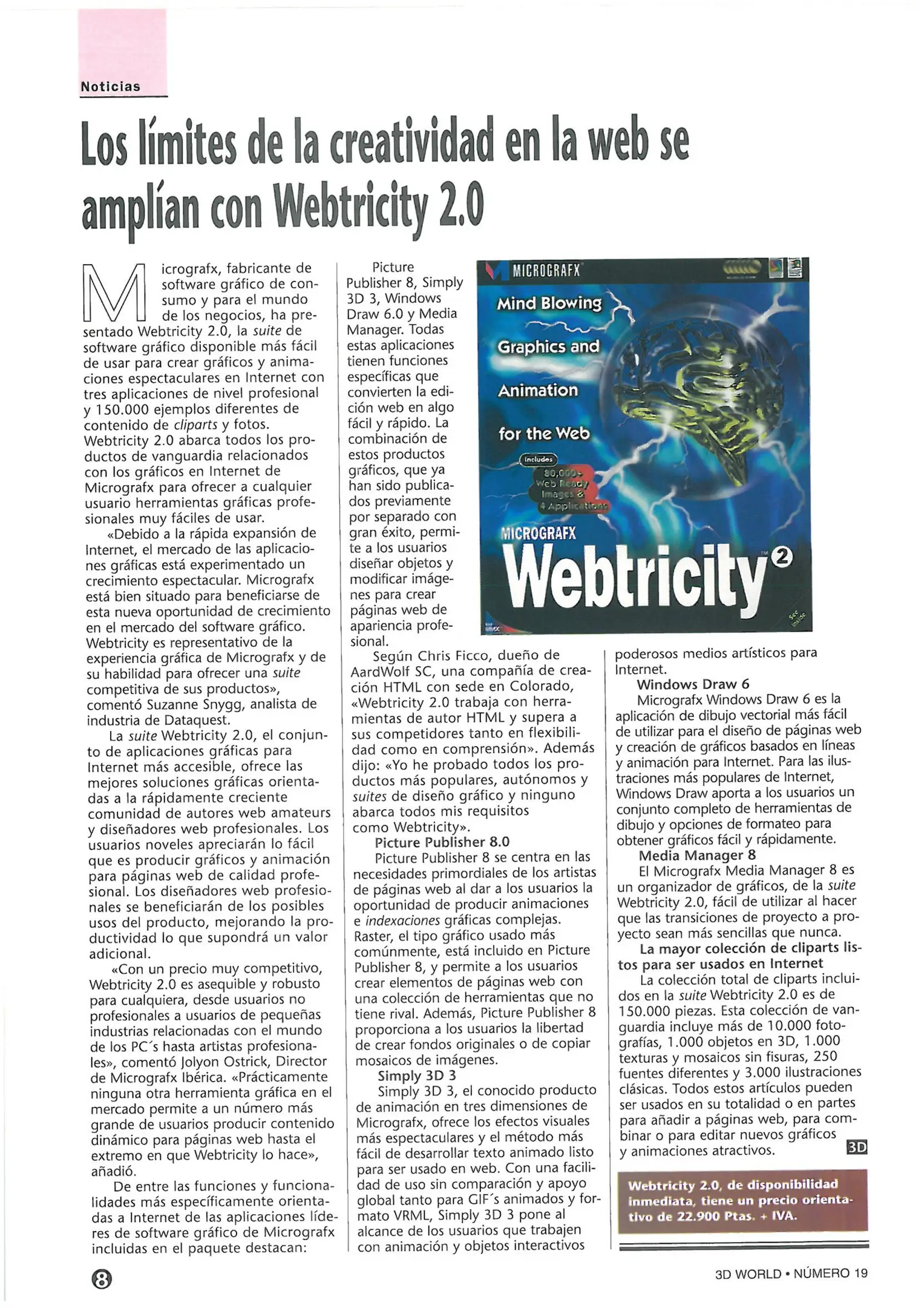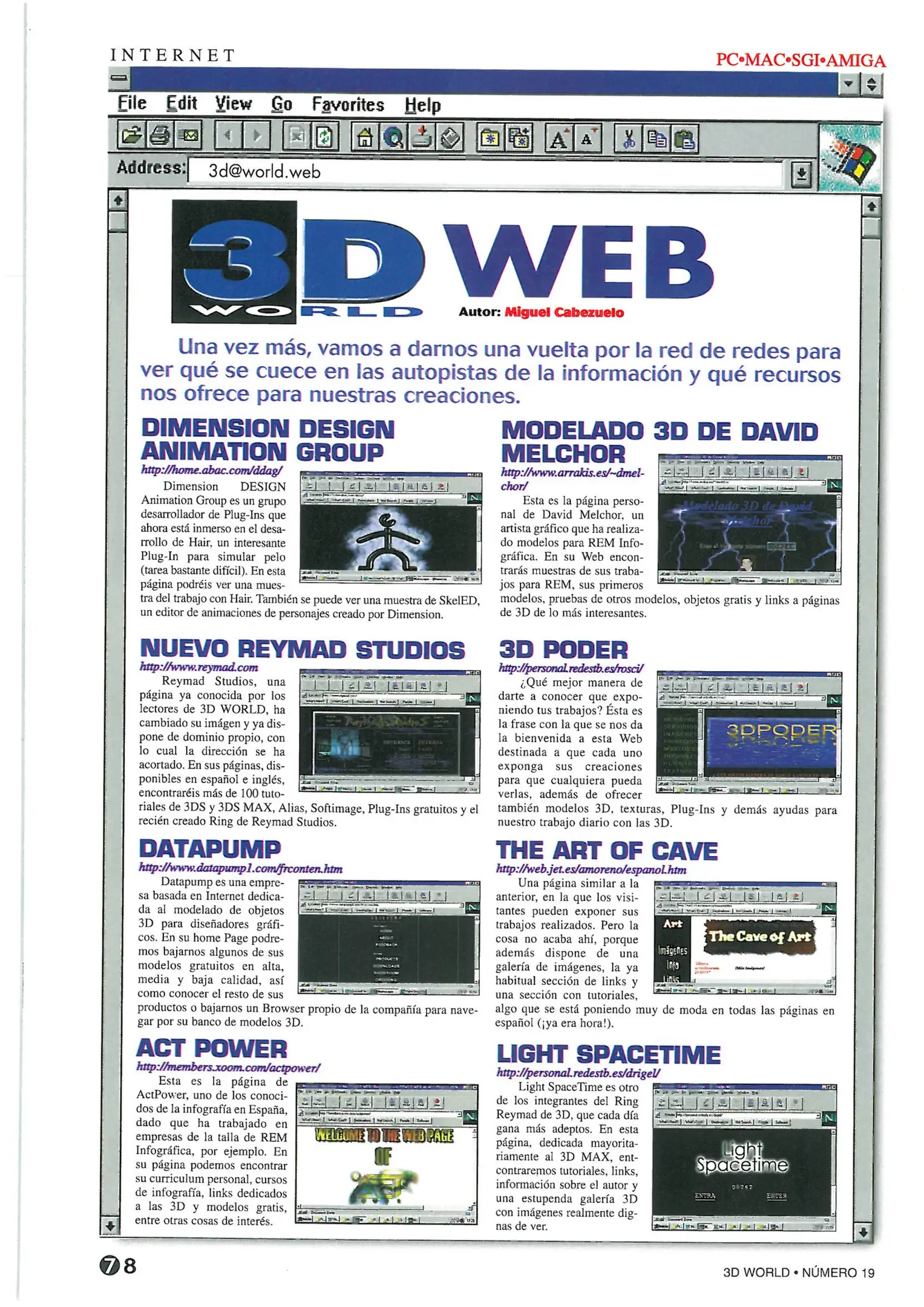 [lang_hl=es,Español]Museo[/lang_hl] [lang_hl=en,English]Museum[/lang_hl] > [lang_hl=es,Español]Biblioteca[/lang_hl] [lang_hl=en,English]Library[/lang_hl] > [lang_hl=es,Español]Revistas[/lang_hl] [lang_hl=en,English]Magazines[/lang_hl] > 3D World > 1998 > Año II · Nº 19 - [lang_hl=es,Español]Octubre[/lang_hl] [lang_hl=en,English]October[/lang_hl]
