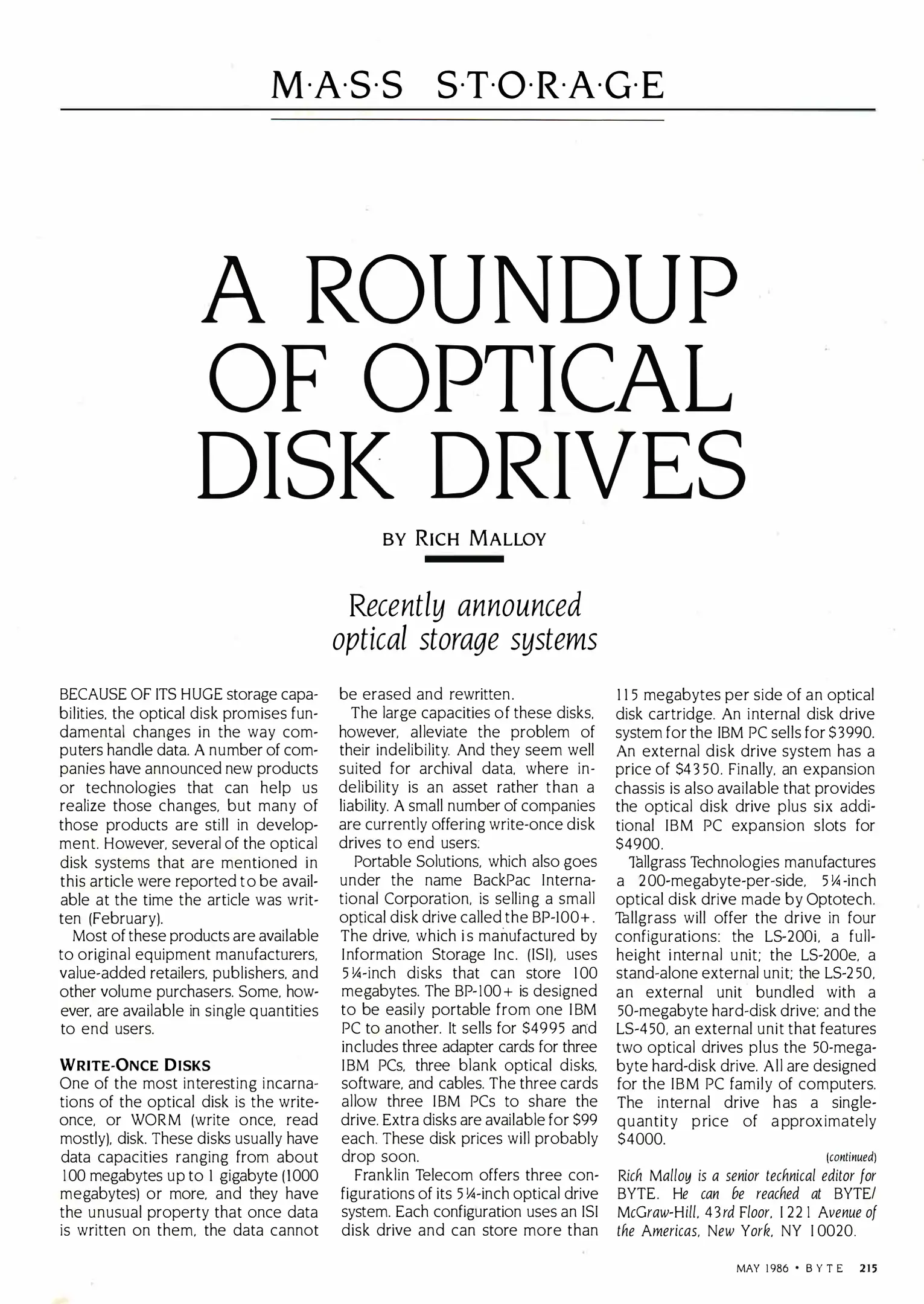 [lang_hl=es,Español]Museo[/lang_hl] [lang_hl=en,English]Museum[/lang_hl] > [lang_hl=es,Español]Biblioteca[/lang_hl] [lang_hl=en,English]Library[/lang_hl] > [lang_hl=es,Español]Revistas[/lang_hl] [lang_hl=en,English]Magazines[/lang_hl] > Byte Magazine > 1986 > Mass Storage - [lang_hl=es,Español]Mayo[/lang_hl] [lang_hl=en,English]May[/lang_hl]
