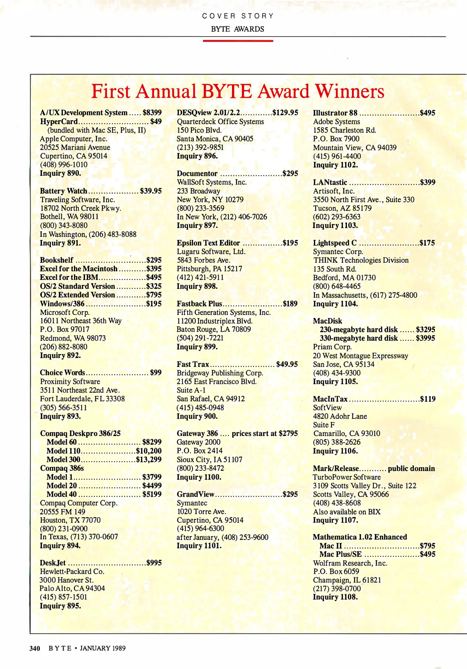 Byte Magazine - PC Communications and Annual Awards and Digitizing Tablets [[lang_hl=es,Español]Enero de 1989[/lang_hl] [lang_hl=en,English]January of 1989[/lang_hl]]