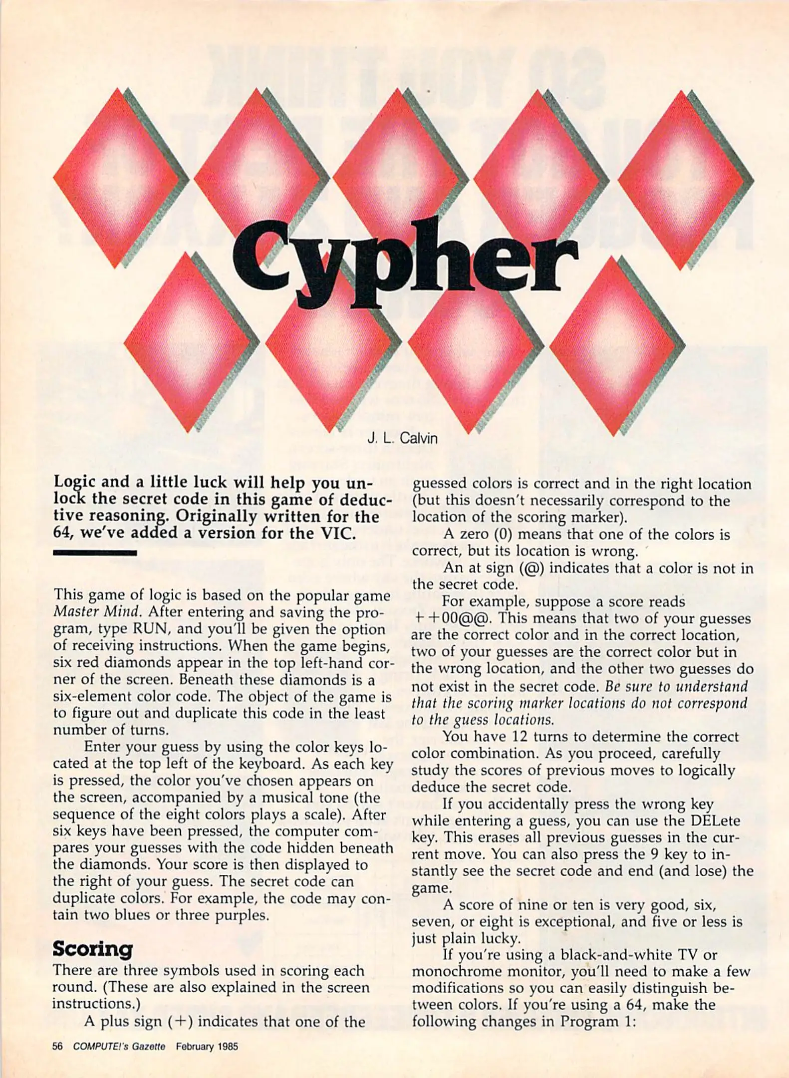 [lang_hl=es,Español]Museo[/lang_hl] [lang_hl=en,English]Museum[/lang_hl] > [lang_hl=es,Español]Biblioteca[/lang_hl] [lang_hl=en,English]Library[/lang_hl] > [lang_hl=es,Español]Revistas[/lang_hl] [lang_hl=en,English]Magazines[/lang_hl] > Compute!’s Gazette > 1985 > #20 - [lang_hl=es,Español]Febrero[/lang_hl] [lang_hl=en,English]February[/lang_hl]