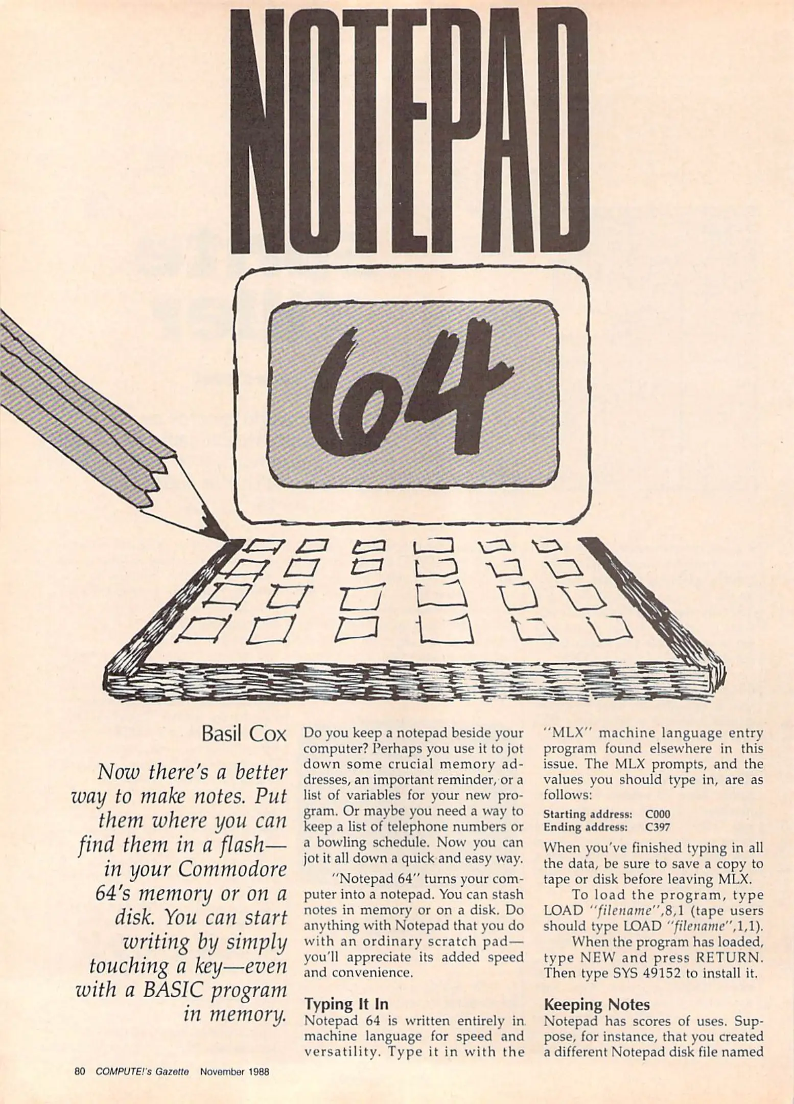 [lang_hl=es,Español]Museo[/lang_hl] [lang_hl=en,English]Museum[/lang_hl] > [lang_hl=es,Español]Biblioteca[/lang_hl] [lang_hl=en,English]Library[/lang_hl] > [lang_hl=es,Español]Revistas[/lang_hl] [lang_hl=en,English]Magazines[/lang_hl] > Compute!’s Gazette > 1988 > #65 - [lang_hl=es,Español]Noviembre[/lang_hl] [lang_hl=en,English]November[/lang_hl]