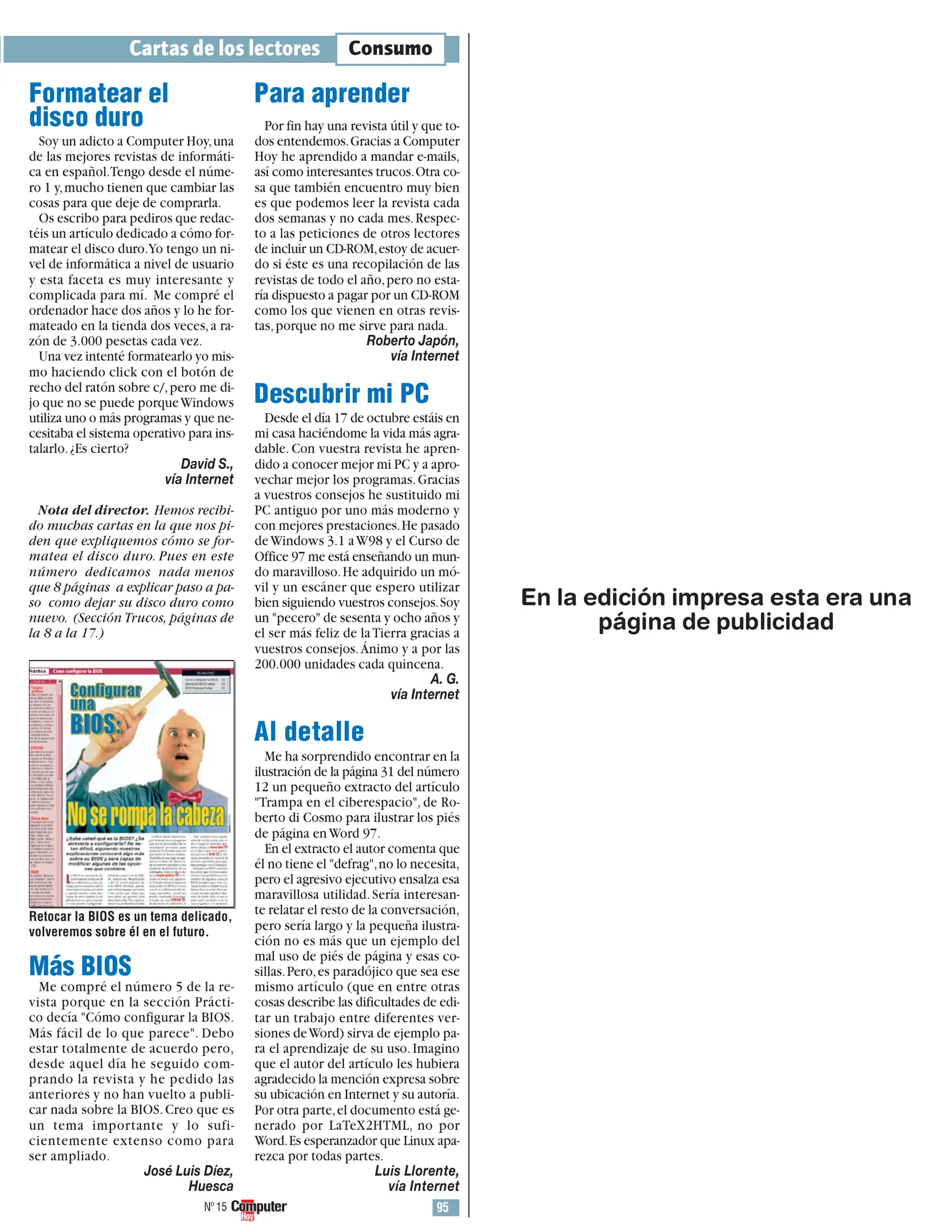 [lang_hl=es,Español]Museo[/lang_hl] [lang_hl=en,English]Museum[/lang_hl] > [lang_hl=es,Español]Biblioteca[/lang_hl] [lang_hl=en,English]Library[/lang_hl] > [lang_hl=es,Español]Revistas[/lang_hl] [lang_hl=en,English]Magazines[/lang_hl] > Computer Hoy > 1999 > Número 15 - [lang_hl=es,Español]Mayo[/lang_hl] [lang_hl=en,English]May[/lang_hl]