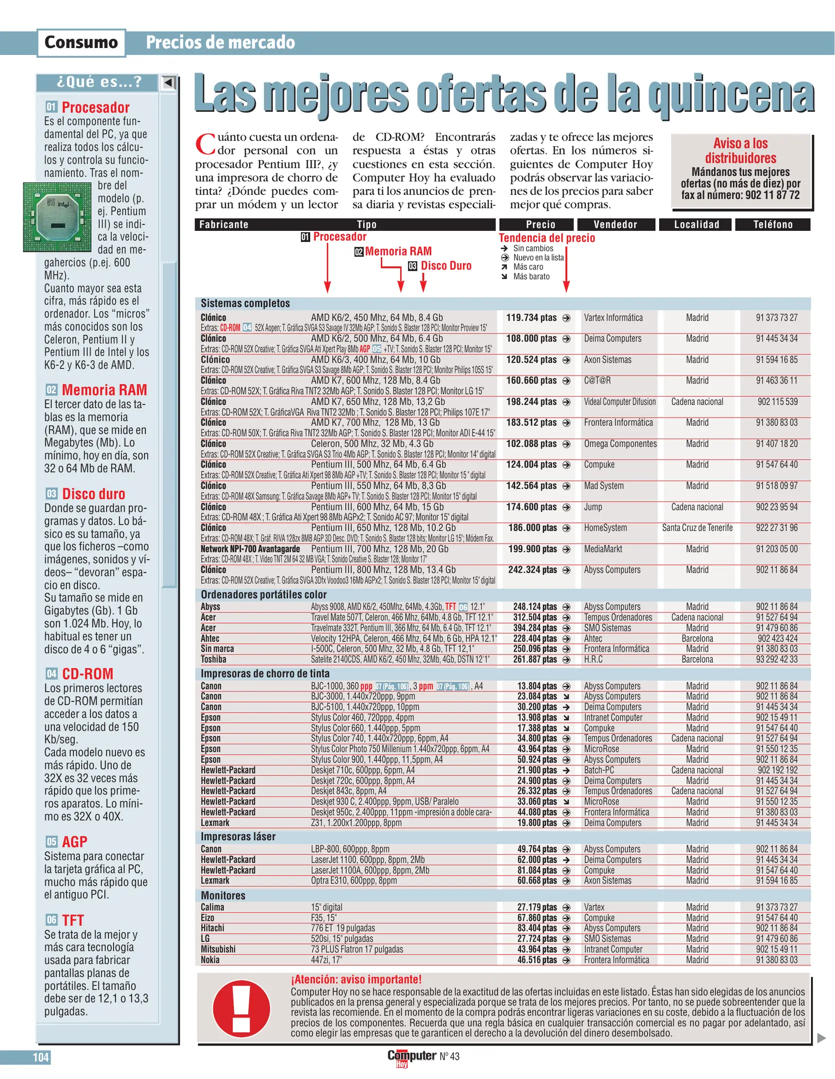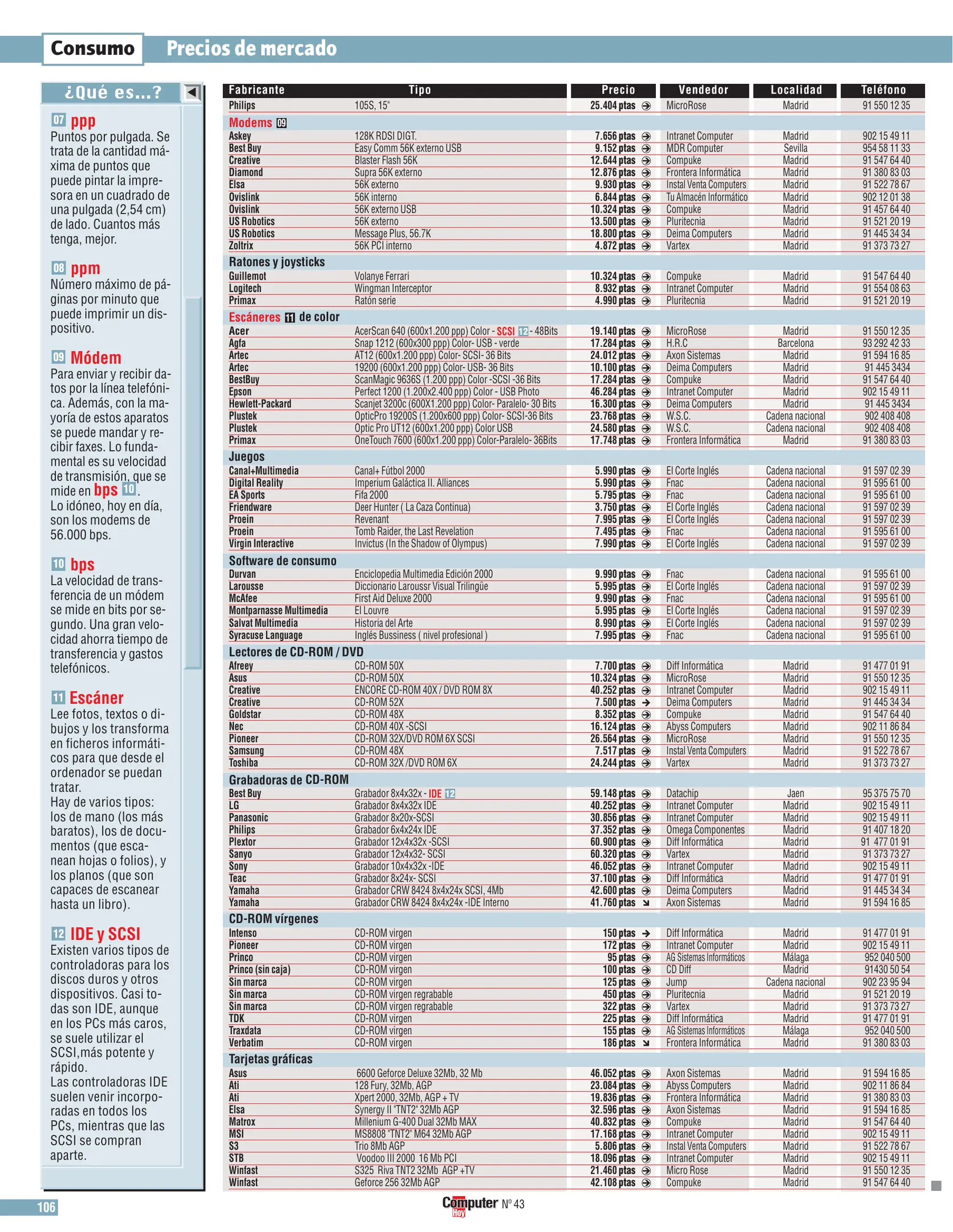 Computer Hoy - Número 43 [[lang_hl=es,Español]Junio de 2000[/lang_hl] [lang_hl=en,English]Jun of 2000[/lang_hl]]